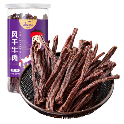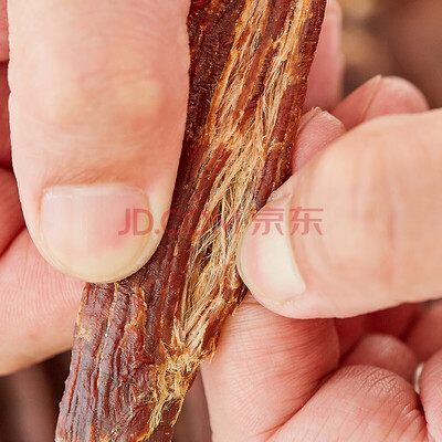 草原村超干牛肉干选用纯净肉质,先风干再烤制,嚼劲十足,肉丝坚韧,丝丝入味,撕着吃不硬,挺好嚼。