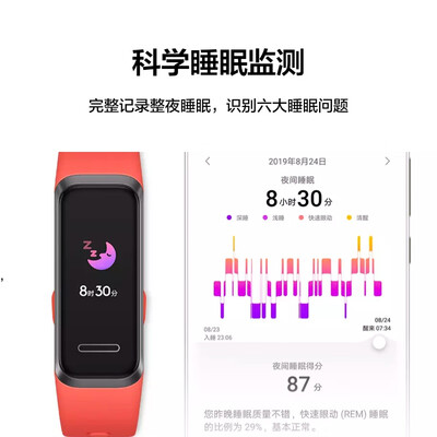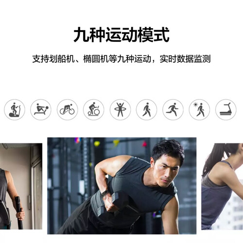 臻彩全触控彩屏,智能提醒功能,操作方便。心率睡眠监测,悉心呵护身体健康。还有九种运动模式,腕上私教随时开练。