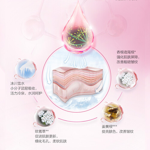 冰川雪水小分子团易吸收,令肌肤拥有充沛的水分滋养,不易出现干燥粗糙现象。强化肌肤屏障,无惧外界恶劣环境影响。