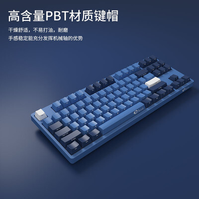 87键紧凑型布局,搭配炫酷配色设计,时尚外观美观精致,桌面放置省空间。高含量PBT材质键帽,敲击舒适耐磨不打油。