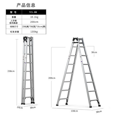甄选航空铝材打造而成,承重力强,500kg的重量也能轻松应对。采用轻量化的设计,梯子重量仅10.1kg,外出携带不费劲。