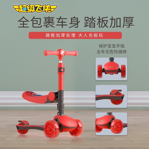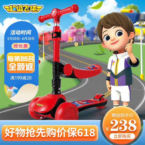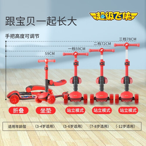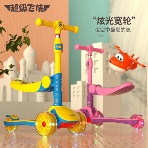 超级飞侠儿童滑板车,多种模式随心切换省心省力,75°等腰三角形着力结构,承重性更强,四档可调,安全锁扣,双重锁定更放心。