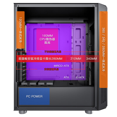 拥有良好的散热通道,加快机箱内部的空气流通,及时排出热量。宽敞的内部空间,可以装配更多硬件,满足你的想象力。
