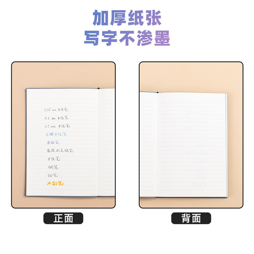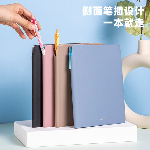 精选PU皮料材质作为封面,具有防水的作用,避免意外浸湿内页。并且侧边设置有插笔的位置,对于商务和学习者而言都比较便利。