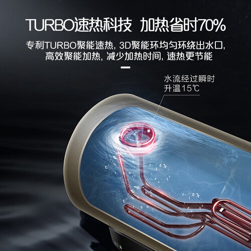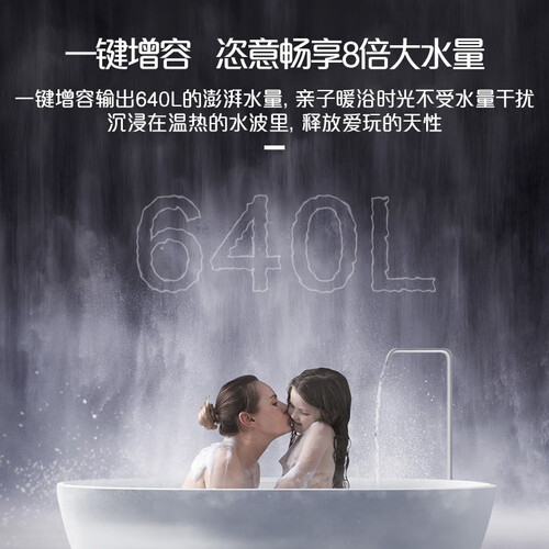 TURBO聚能速热,一键洗漱模式,水温下降后机器自动加热,用水无需久等。8倍大水量,连续输出640L热水,热水源源不断。