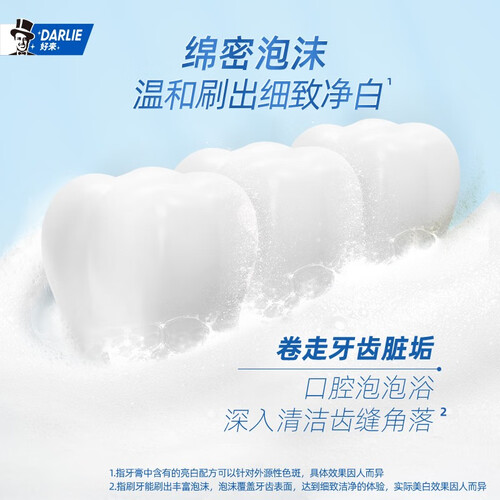 选用自然配方,含高密度亮白微分子,亮白隔离双重效果,绵密的泡泡温和包裹牙齿,搭配天然椰香薄荷香型,让你爱上刷牙。