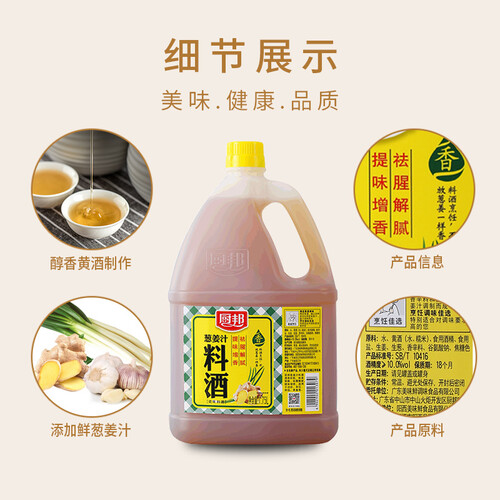 这款葱姜汁料酒,精选黄酒调制,辅以香辛料调制而成。烹饪调味佳选,特别适合对调味要求高的您。味美鲜醇,使用方便。