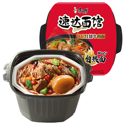 自热锅不用火不用电,方便简单,随时随地品尝美味。里面有肉块,肥瘦相间,搭配面条入口鲜嫩顺滑,营养充分,好吃到停不下来。