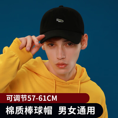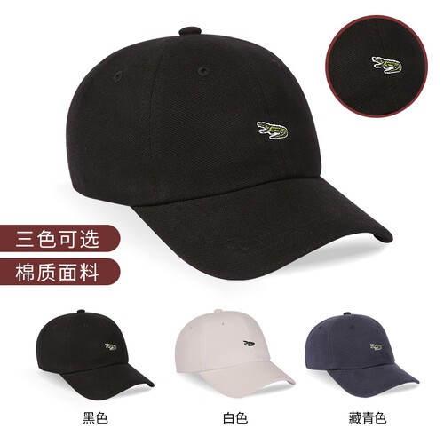 基础款棒球帽,没有多余装饰的纯黑色帽身,正中印制了小巧精致的鳄鱼图案提升档次感。魔术贴头围调节设计,简单快捷。