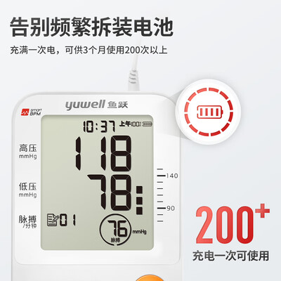 充电语音款,充满1次电,可测200次左右。语音指导操作,搭配高清大屏,轻松测血压。360°随心测袖带,导管在任何位置都能准确测量。