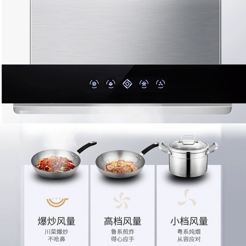 立体内锥深腔技术,可牢牢吸附住升腾的油烟,避免油烟上脸。设有三段风量可调节,烹炸煎炒样样都行,烹饪更轻松。