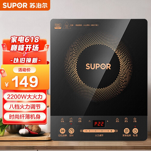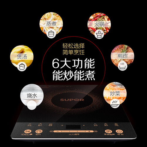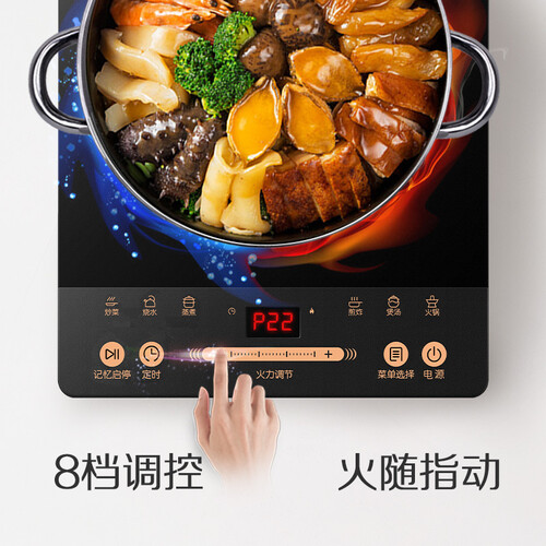 此款电磁炉拥有智能定时功能,自动烹煮,无需在一旁看管;采用记忆启停技术,不用时停止,节省用电,使用时迅速开启,方便快捷。