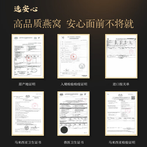 马来西亚大燕盏,经过多次精细挑毛工序,洁净度高。约6-8倍的泡发率,粗壮的燕丝更Q弹,更好吃。多重专业检测,吃的安心。