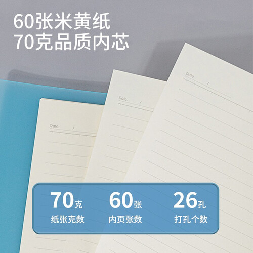 搭载灵活活页夹,活页设计可灵活增减内页,使用多变又方便,且搭配PP材质封面,手感舒适,坚固耐磨,不易褶皱。