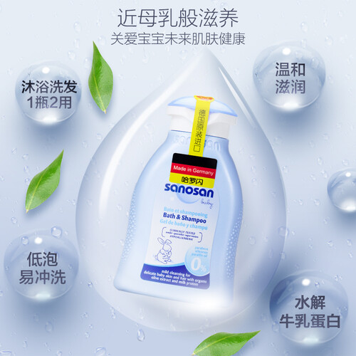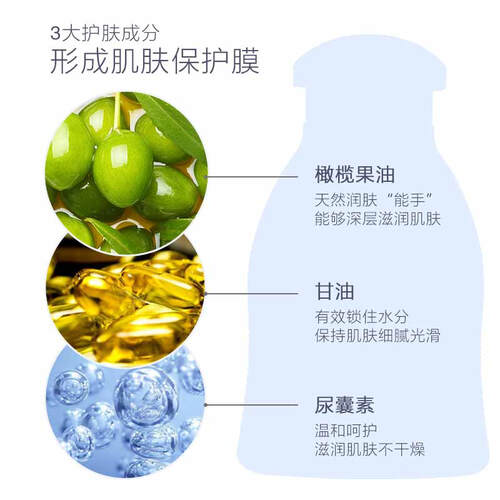 蕴含有机橄榄提取物精华,为柔软肌肤创造水脂膜,不滑不粘,轻轻一冲就干净。而且含水解牛乳蛋白,稳定耐受,温和贴近宝宝肌肤。
