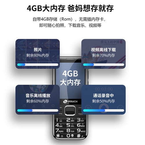 自带4GB内存,可满足日常拍照听音乐等,想存就存。智能语音设计,随时播报,大音量,听得清,看到的都能播。