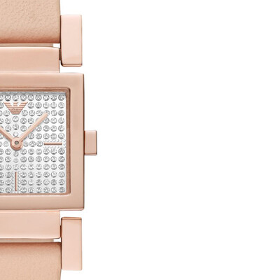 满钻方形表盘设计,搭配利落剑型指针,璀璨绚丽,闪耀迷人,凸显品质感。精选皮质表带,柔软贴合肌肤,佩戴舒适。