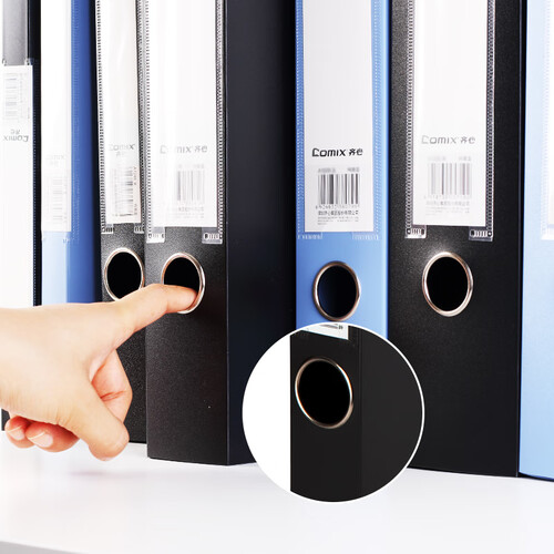 增加圆形铁环孔设计,便于抽取,拿取文件更省时不费劲;抽取式背条,可书写、标注、更换背条内容,查找资料一目了然。