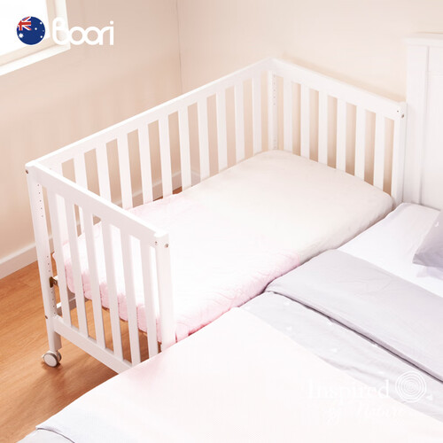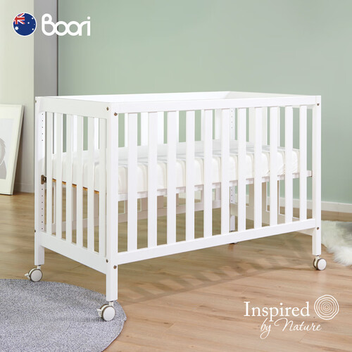 极简风的造型设计,结合实木的材质,婴儿床实用结实还能迎合不同的家居装修。