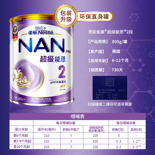 德国进口港版雀巢奶粉,营养配方经过优化升级,含有充沛经过水解技术处理的蛋白质,降低致敏性,带来自然甘甜,宝宝更爱喝。