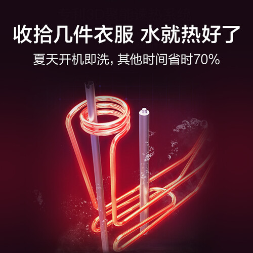 第五代3D聚能速热系统能给予您更贴心的守护,能做到即开即热,减少等待时间,配置640L的大容量,能满足全家人的洗浴需求。