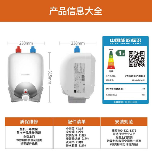 采用大功率快速加热设计,可以让热水快速到达,有效减少等待。搭配旋转式按钮调节温度设计,轻轻旋转就能得到想要的水温。