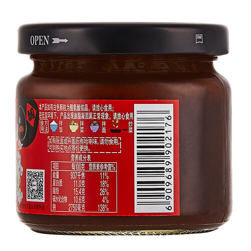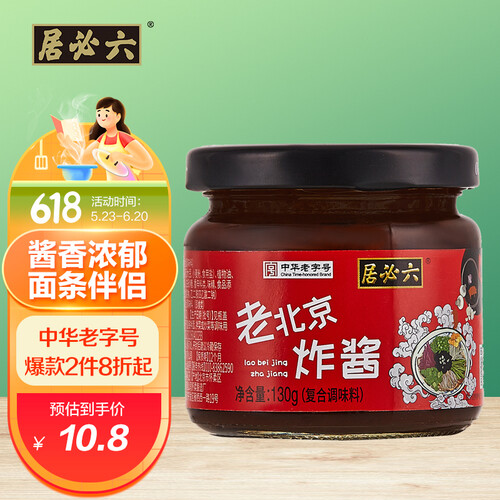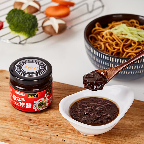 六必居老北京炸酱添加了猪肉、杏鲍菇、甜面酱等食材,酱香浓郁,咸淡适宜,适合拌面,老人孩子都爱吃。