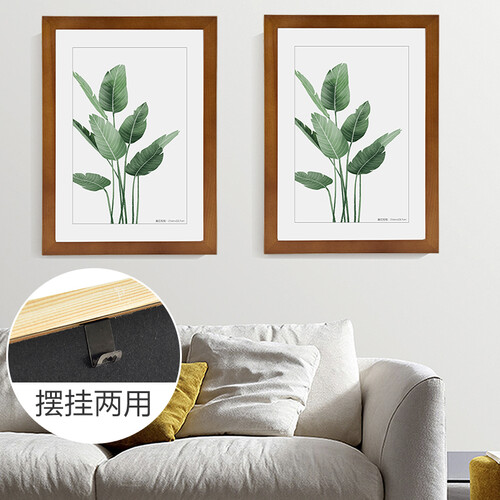 相框采用实木打造,纹路清晰,线条简洁漂亮,高透光率面板,不易碎。背面有固定卡扣设计,装取照片方便,摆挂两用。