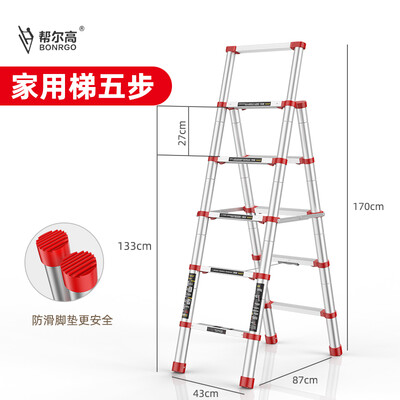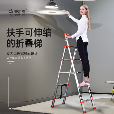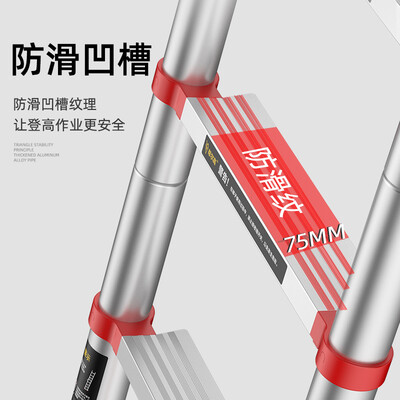 安全防滑的大脚垫设计,脚套与地面接地面积大,不伤地板适应各种地面。铝合金支撑杆加固,防止梯子岔开。