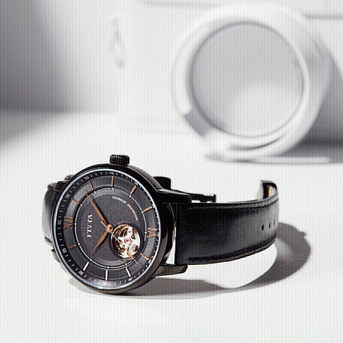 采用了按钮式的蝴蝶扣设计,摘戴方便,方便调节。表盘出的LOGO标识,彰显了时尚的品牌文化。透明的表背面,精心雕刻。