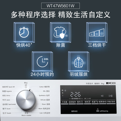 专业防过敏程序,洗涤洁净不残留,呵护肌肤健康更安心。干衣机有3挡烘干程序,热泵低温烘干,衣物更平整蓬松,省心便捷。