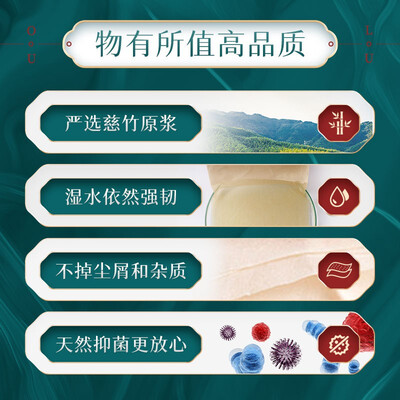选用韧性很好的慈竹纤维制成,质感柔软使用更舒适,不易给肌肤带来不适感。使用不易出纸屑,避免尴尬时刻。