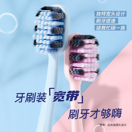 拯救忙碌一族的软毛牙刷,采用宽刷头设计,一次可畅爽刷两排牙齿,实力提高刷牙效率。配合高密度刷毛,密集清洁牙垢,不易出血。