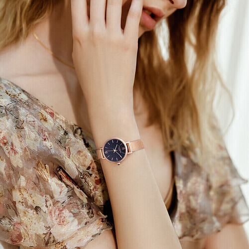 表冠侧面采用黑玛瑙镶嵌,精致典雅,让细节也更具格调感。经典圆盘设计,简洁大方,修饰手腕线条。