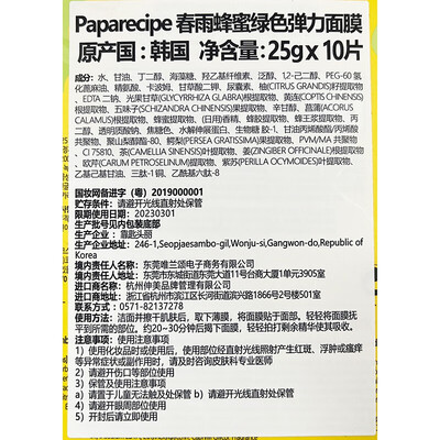 春雨 绿色蜂蜜牛油果弹力面膜