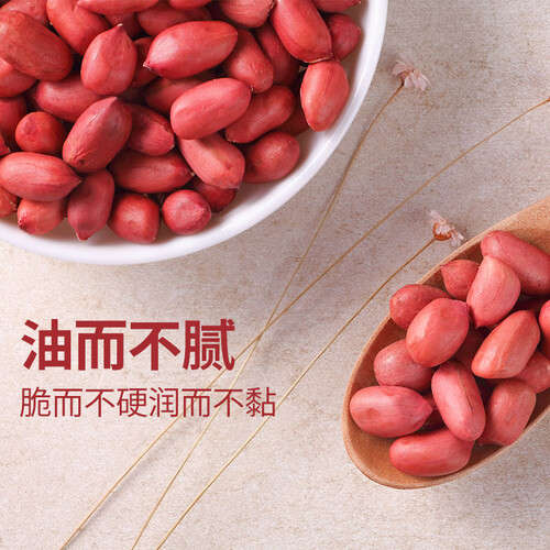 优选东北优质产区直供的花生米,每一颗都经过机器和人工筛选,颗粒饱满、色泽红润,烹煮后吃到嘴里油而不腻、脆而不硬。