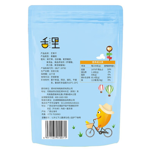 果实日晒超过一千小时,烘干后酸甜度刚刚好,吃起来满口芒果香。包装袋加了密封条,防止果干受潮变质,取食更方便。