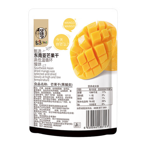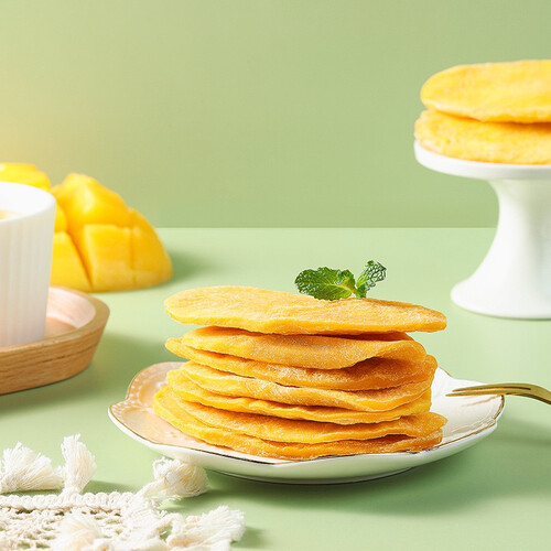 这款芒果干肉质厚实,酸甜适中口感厚实果肉有嚼劲,清香馥郁。果肉干净,肉质柔软。