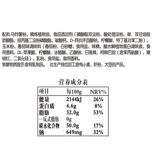 用心选材,认真烹炸,保留了土豆的原香和营养,饥饿时可以补充能量。包装采用密封罐装,更好的保留食物的味道。