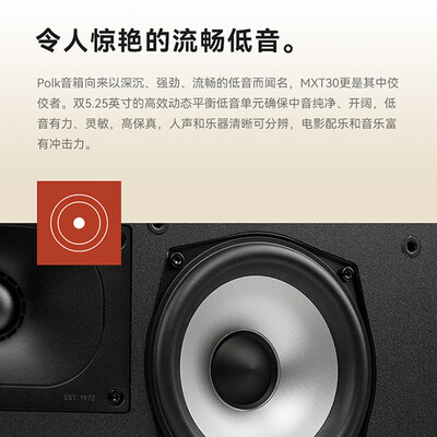 下射倒相孔可让低音冲击力更加强劲,增大低音力度还能保证箱体的优雅性。动态平衡独特设计,呈现更为纯净的原音。