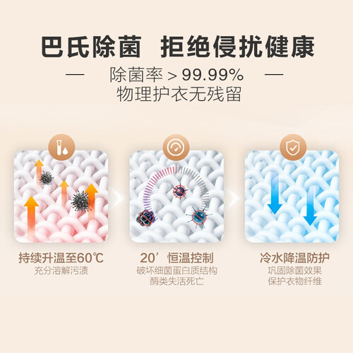 专利泡沫发生技术,快速发泡,深层洗净。三维立体洗涤技术,有效发挥洗净效果。多种干衣选择,轻松除皱,满足不同需求。