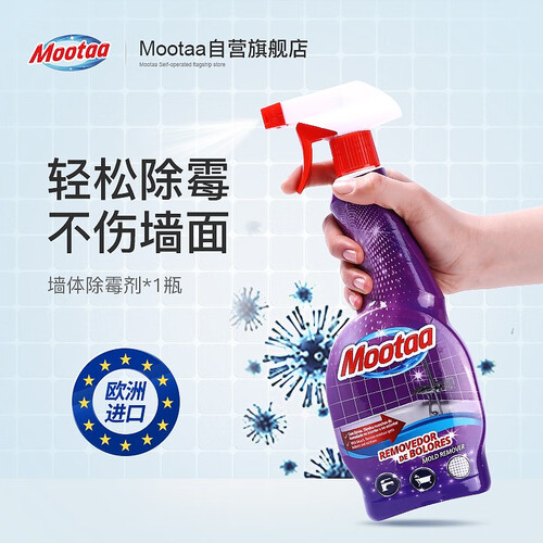 欧洲进口除霉剂,含有非离子表面活性加漂白剂,能主动渗透墙面,快速分解底层霉斑,从源头除霉。采用喷嘴设计,使用便捷。