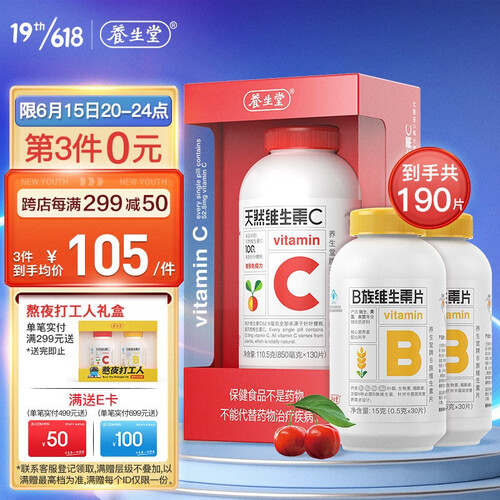 组合装内含有的维生素C和B族维生素片,可互相搭配一起服用,达到相辅相成的效果,营养补充更全面。