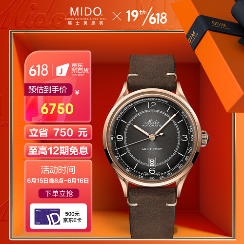 美度 复古皮革表带瑞表