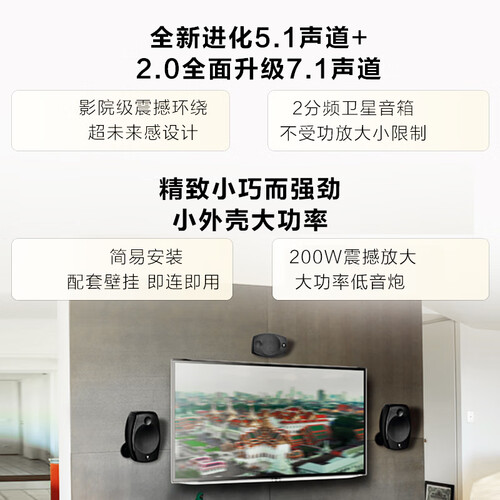 支持杜比全景声,能够带来三维音效的环绕立体声效果。内置低音炮技术,可以准确的控制声音的方向性。