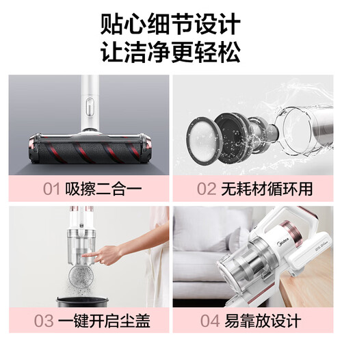 人性化的无线设计,免去电线束缚,清洁的范围更加灵活。搭载四大降噪技术,运行时更加安静,夜晚也可以放心打扫卫生。