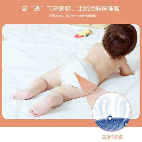 内置多层复合芯体,带来更加强劲吸收力,锁住尿液不回渗。搭配弹力大腰围,无论宝贝怎么动,都能保持舒适又贴身的效果。