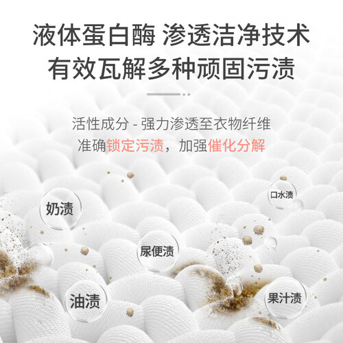 专为婴幼儿量肤定制的洗衣液,可以有效抑制细菌,保持衣物的卫生洁净。去污效果更加显著,可以彻底清除顽固污渍。