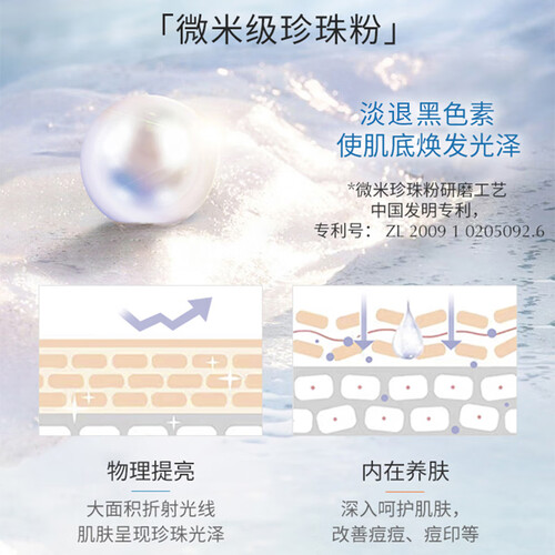采用京润珍珠专利研磨微米级纯珍珠粉,粉质细腻,具有很好的延展性,能够快速在肌肤表层形成防护膜,自然提亮肤色。