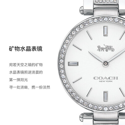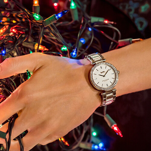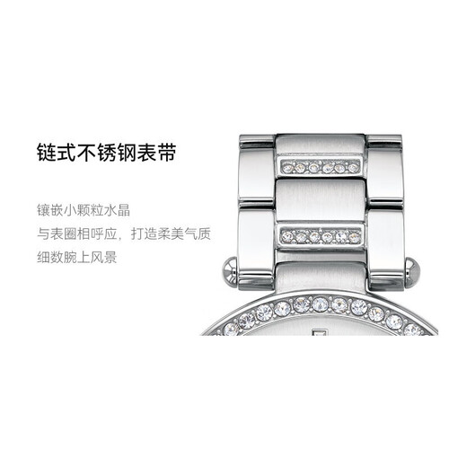 银色钢带设计,镶嵌blingbling的水钻点缀,与表圈默契呼应,尽显轻奢浪漫的魅力风格,轻松衬显优雅迷人气质。